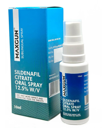- MaxGun Sublingual Spray wird zur Behandlung von erektiler Dysfunktion eingesetzt. Das Medikament wirkt, indem es den Blutfluss durch die Hemmung von Phosphodiesterase Typ 5 (PDE5) verbessert.